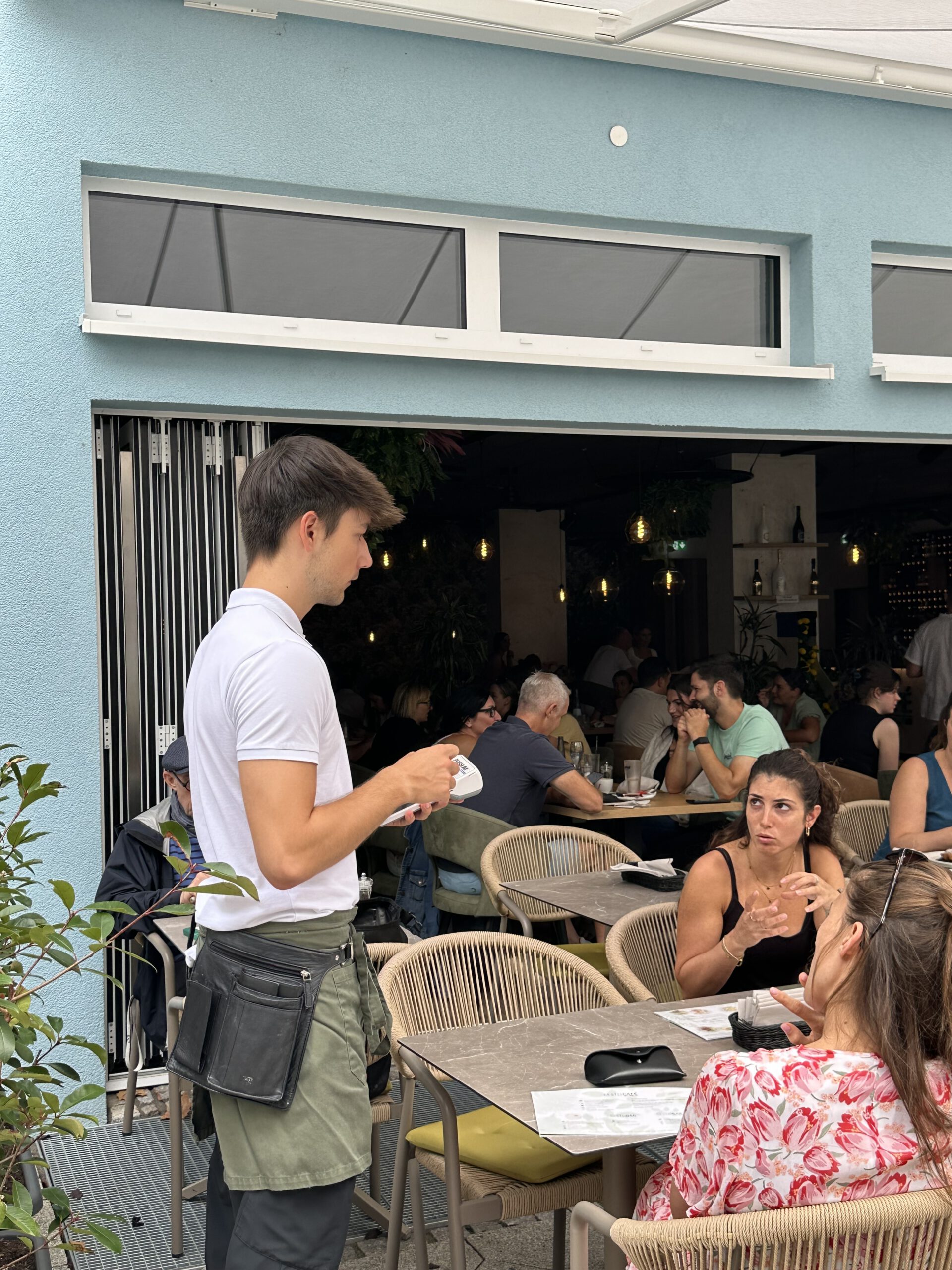 "Alle Mitarbeiter sind sehr freundlich, obwohl das Restaurant voll besetzt war. Die Speisekarte ist klein, wenn man nicht gerade frühstücken will. Die Pinsas aber frisch, lecker und sehr gross. Tees werden nicht mit billigen Teebags serviert sondern mit losem Tee im Sieb. Preis-/Leistung ist gut."