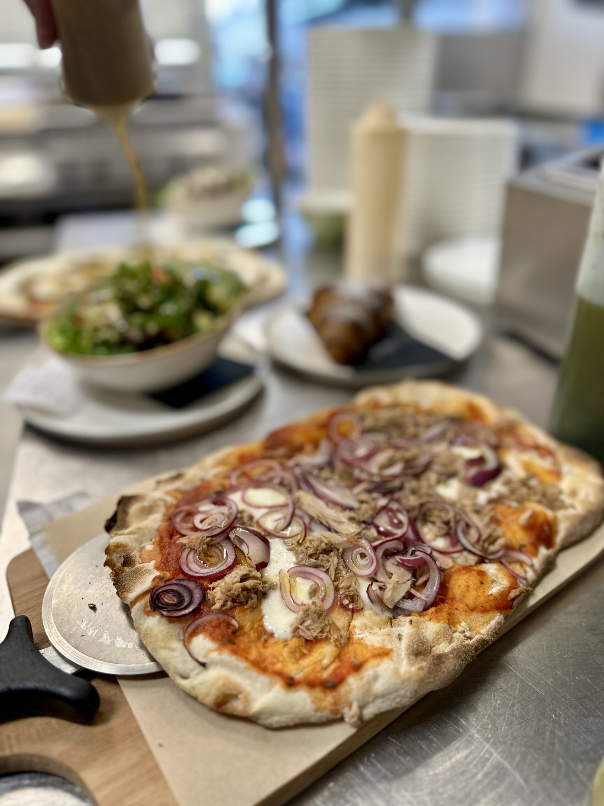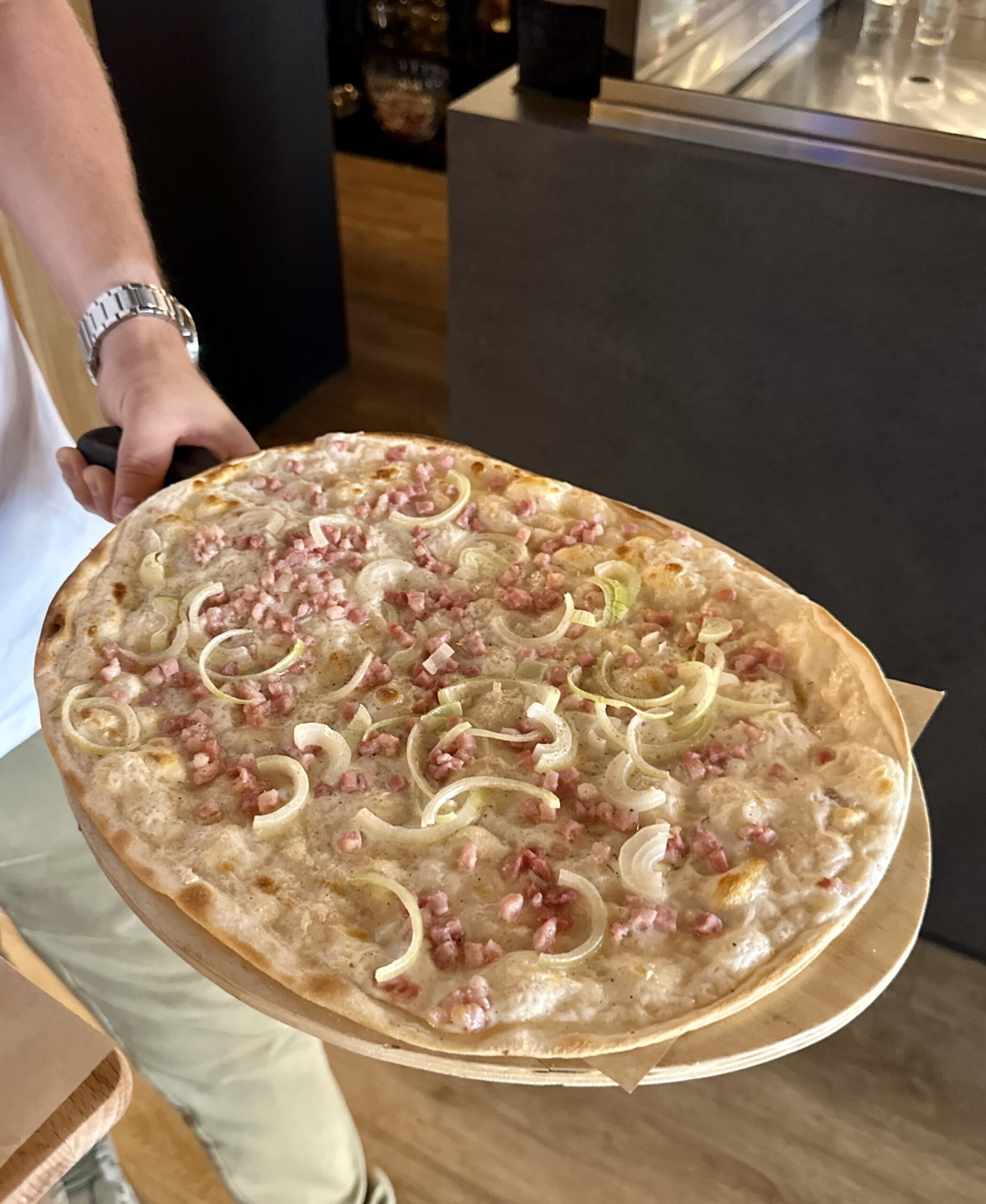 Ob cremige Pinsa, herzhafter Flammkuchen oder wechselnde Bowls – unsere warme Küche bietet dir alles für eine genussvolle Auszeit.